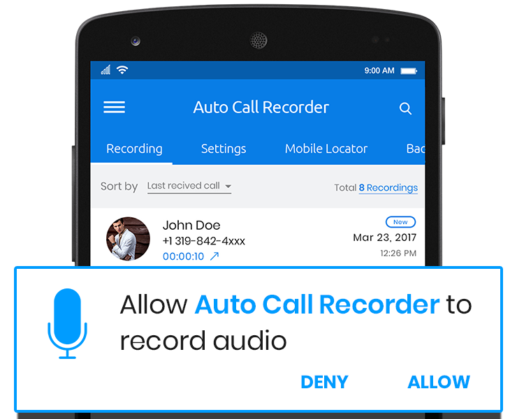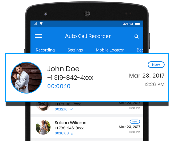 Records any Incoming & Outgoing calls in HD voice Quality,play any recorded call whenever you want to listen it.